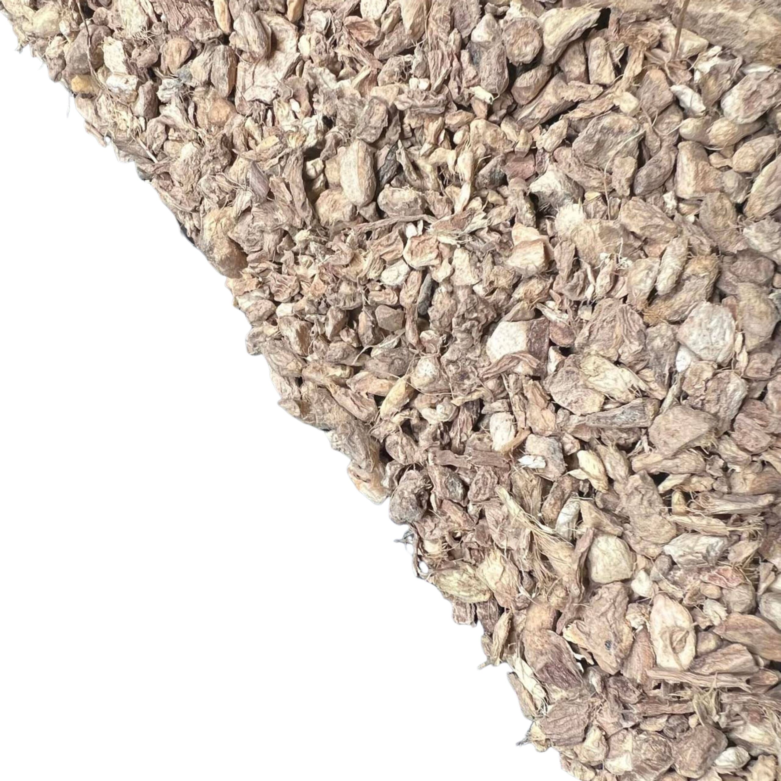 Info: Dried ginger has a characteristic pungent, hot, tangy taste. Dried ginger is spicier than fresh ginger, and due to this difference is generally not recommended for direct replacement in recipes calling for fresh ginger. Cut ginger is about 1/4-inch pieces, with some variation in cut size.