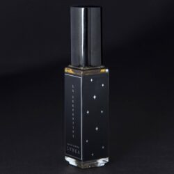 Presented in a 8ml black glass bottle with an atomizer spray top, sheathed in a black cardboard box with silver embossing.