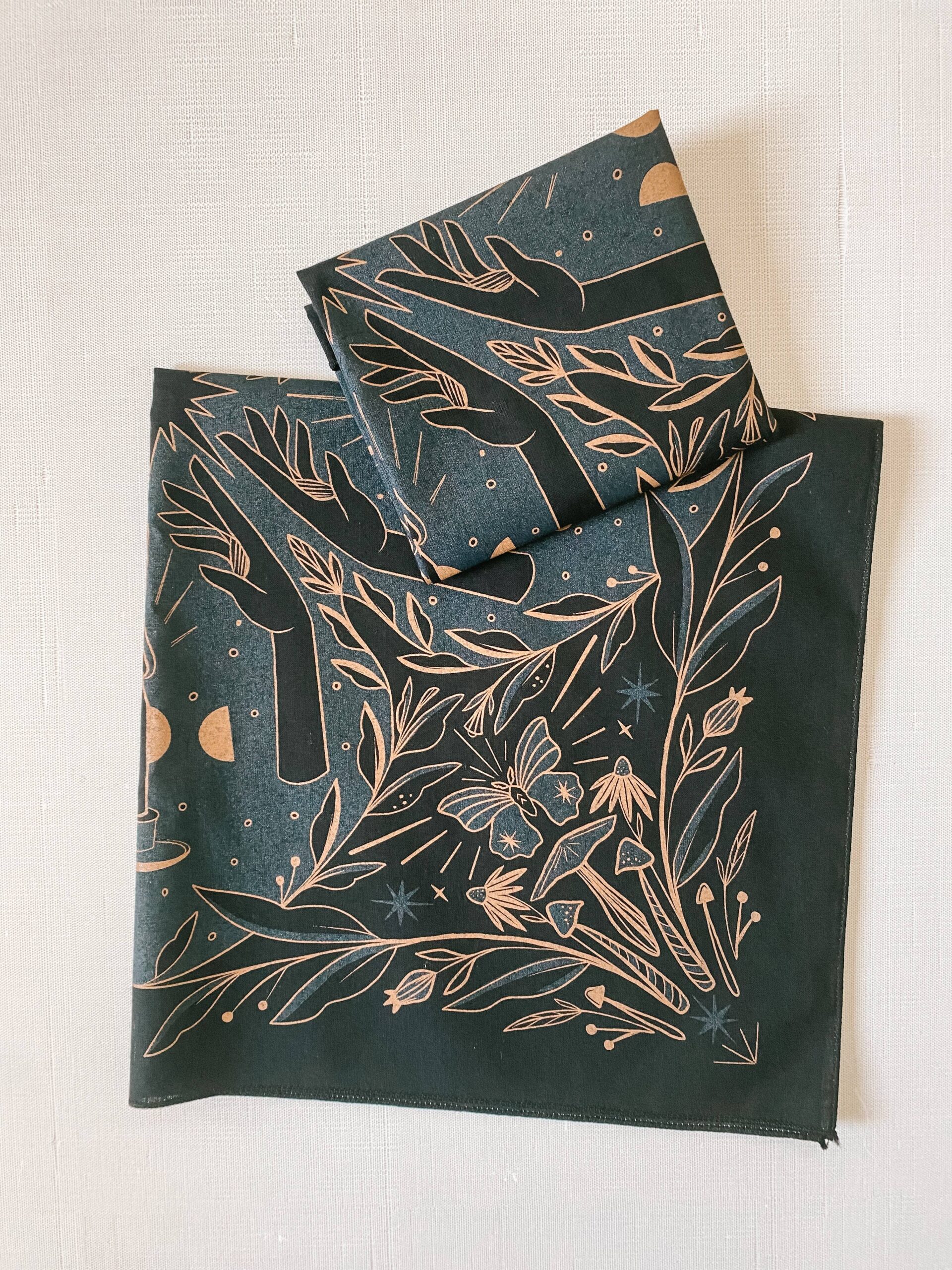 These are traditional bandanas but was also designed for use in altar spaces, tarot readings, crystal displays + gridding, etc.