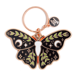 Like a moth to a flame. Enamel keychain with split key ring and charm.