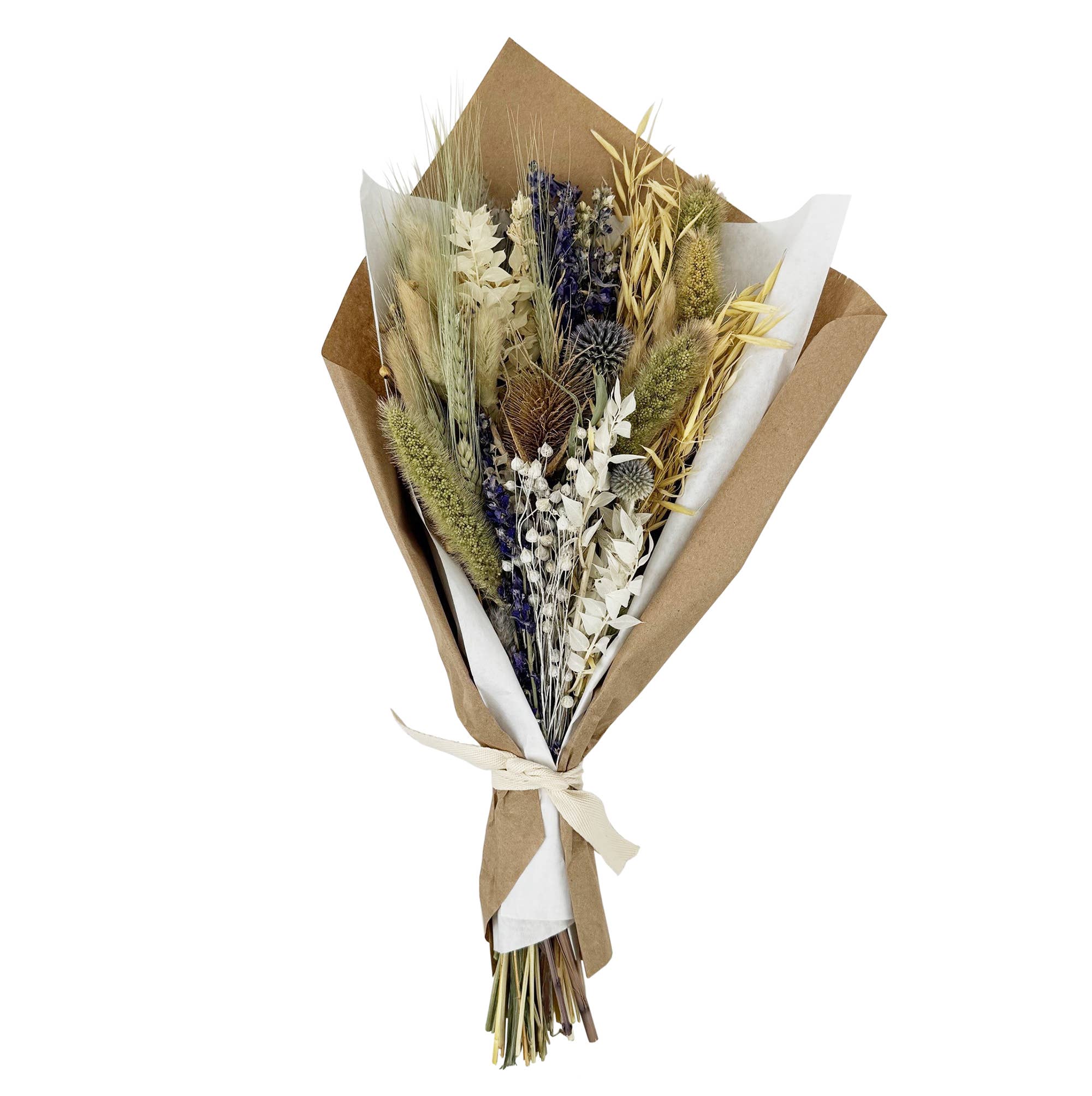 Our floral team designed this abundant bouquet using a mix of delicate sorghum, bunny tails, ruskus, aveena, larkspur, and flax to create this delicate and ornate bouquet arrangement. Each bouquet is designed and handcrafted in our California design studio.